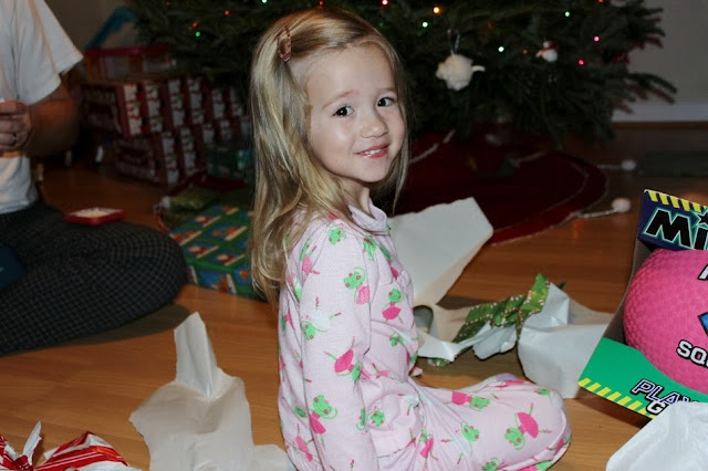 She loved her new pink ball and loved it even more when daddy and YaYa bounced it off of their heads over and over again after opening presents.